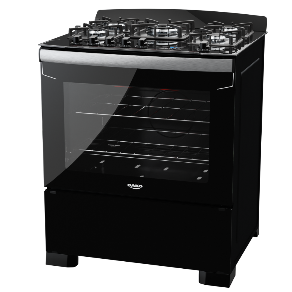 Fogão 5 Bocas Preto com Frente em Vidro Preto e Timer Digital Dako Diplomata Grill: Design moderno e sofisticado que eleva a experiência de cozinhar